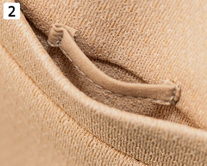 丸みのある襟とパイピングがフェミニンな印象を与えます。
