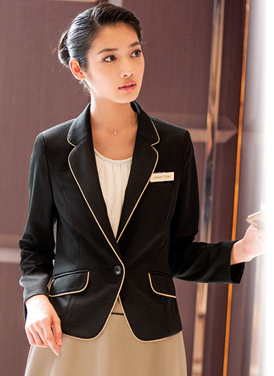 接客中の表情を柔らかく見せてくれる丸みのある襟で、優しい印象を与えます。
