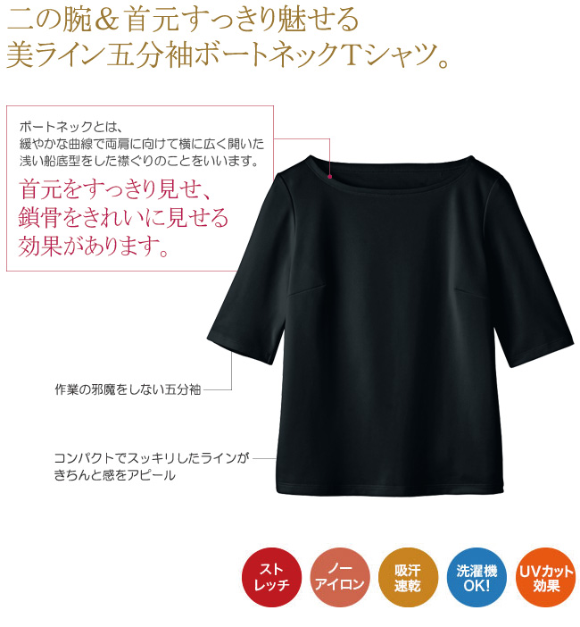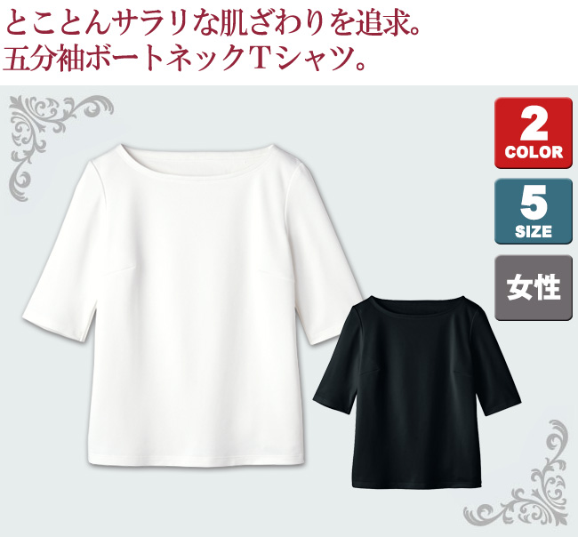 [通年]五分袖ボートネックTシャツ/裏カノコ(23-WP321)