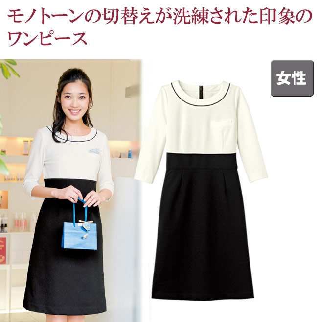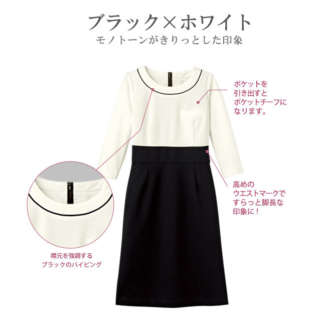 ブラック×ホワイト。モノトーンの切替えが洗練された七分袖ワンピース