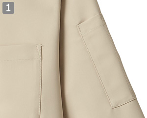 - 左胸ポケット、左袖ペン差し付、両脇スリット