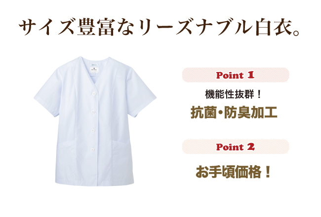 抗菌・防臭加工を施した、リーズナブルな白衣です!
