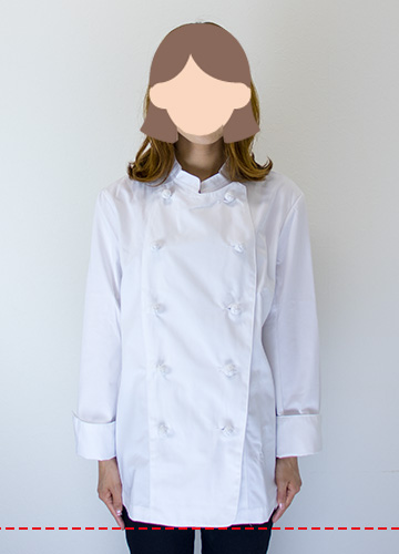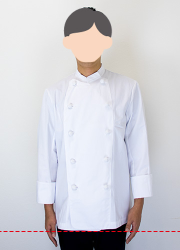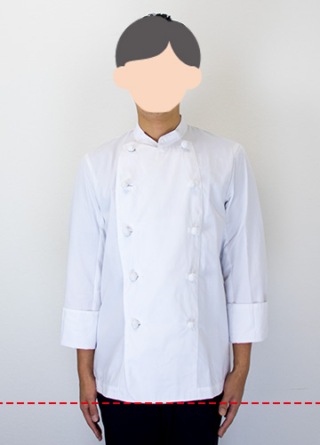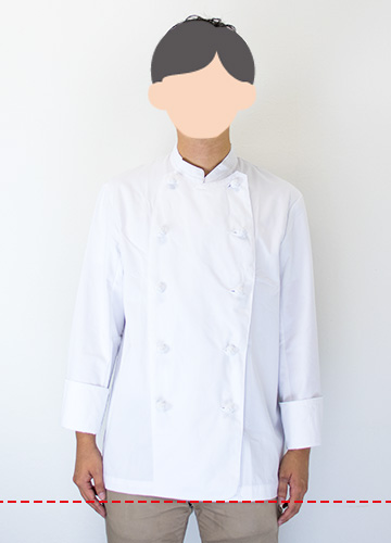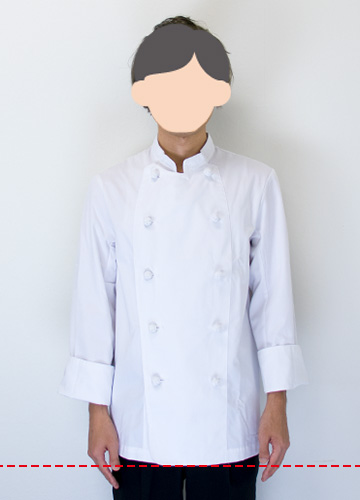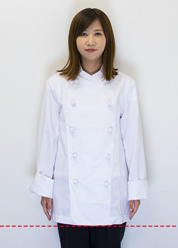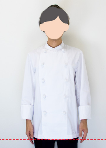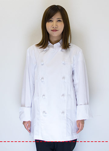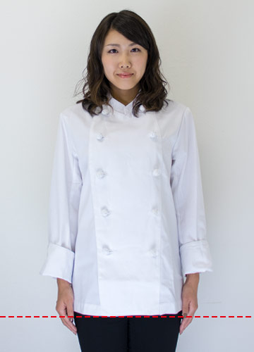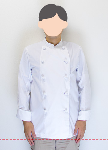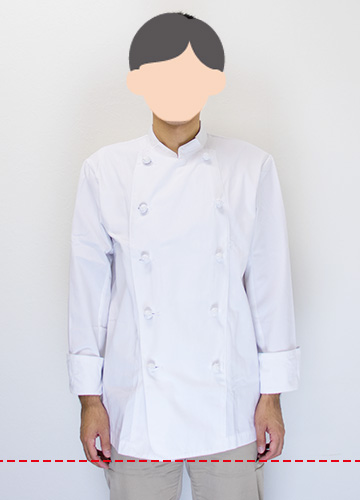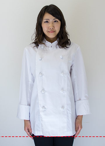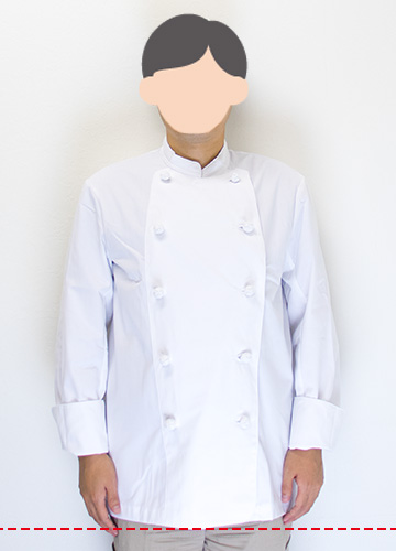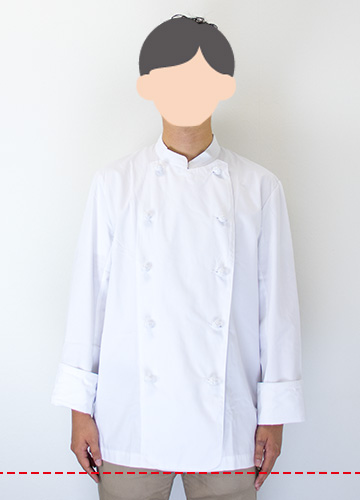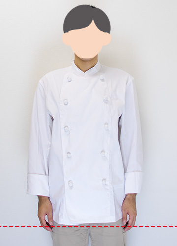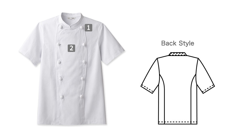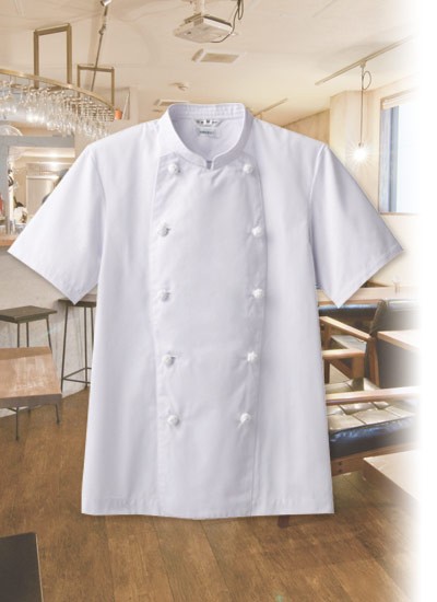 スタンダードでシンプルなデザインのコックコート。コーディネート次第でどんな雰囲気にも変幻自在です。