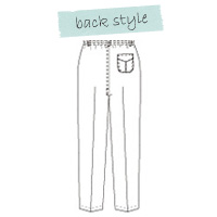 - サイドファスナー、ウエスト後ろゴム、右ヒップポケット