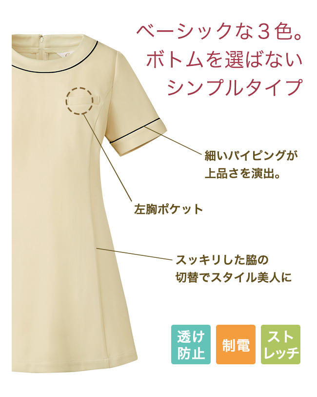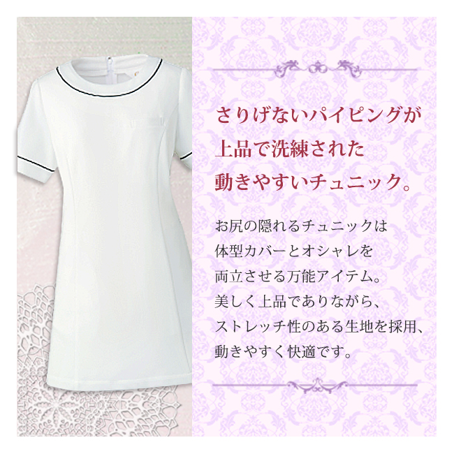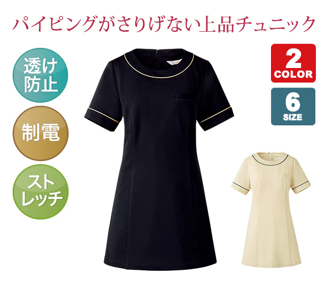 動きやすく快適なストレッチ素材。 パイピングがアクセントの洗練チュニック。