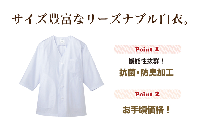抗菌・防臭加工を施した、リーズナブルな白衣です!