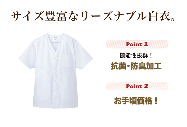 抗菌・防臭加工を施した、リーズナブルな白衣です!