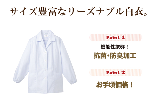 抗菌・防臭加工を施した、リーズナブルな白衣です!