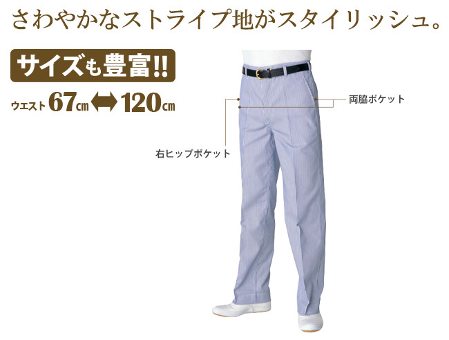 ノータックコックズボン。さわやかなストライプ地。男性用