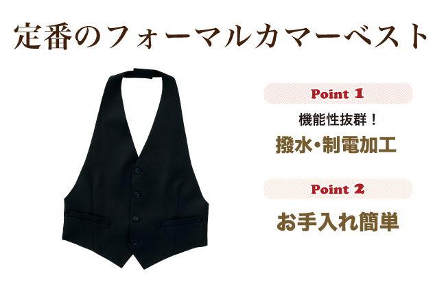 撥水・制電加工のあるフォーマルカマーベストです。