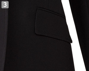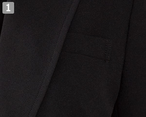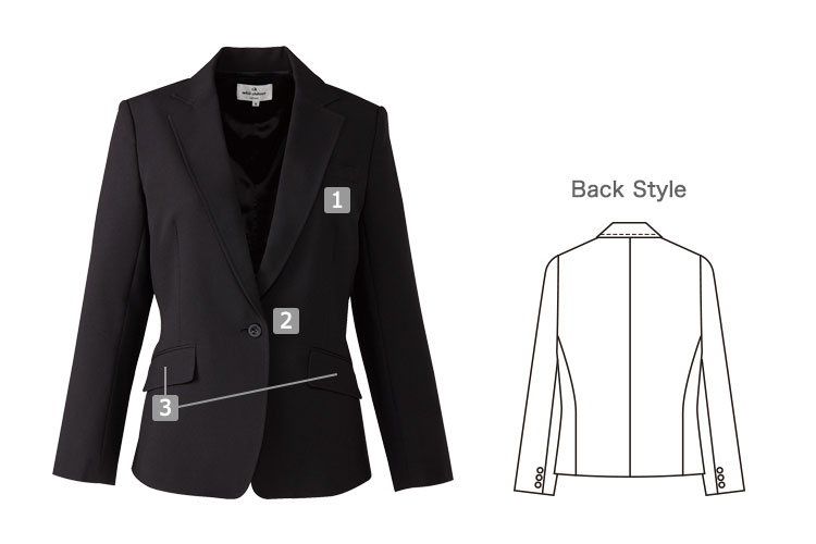 胸元の開きを広く取り、すっきりした印象の1つボタン仕様です。