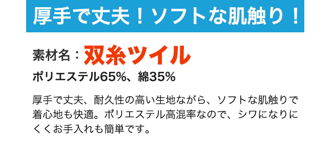 - 双糸ツイル(ポリエステル65%、綿35%)