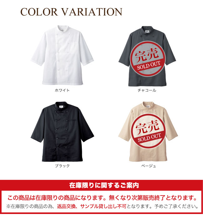 【在庫限り】七分袖コックシャツ[男女兼用](31-AS7105)
