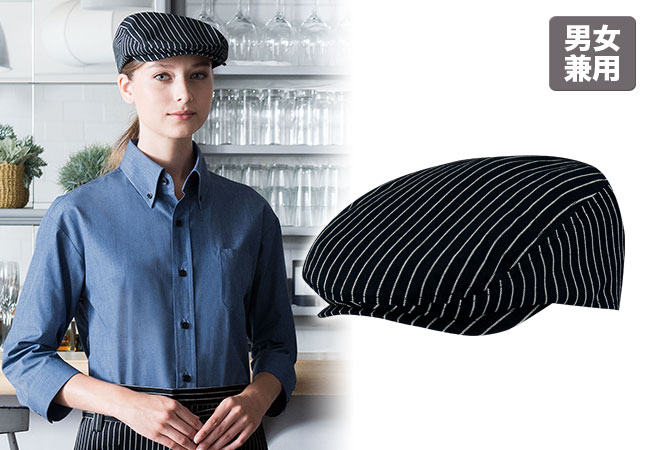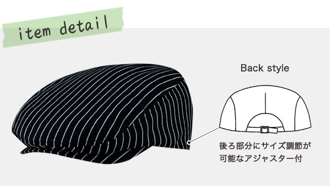 スタイリッシュなヨーロピアンスタイルシリーズ!ブラックのストライプがクールな印象のハンチング帽。後ろアジャスター付きでサイズ調節可能!