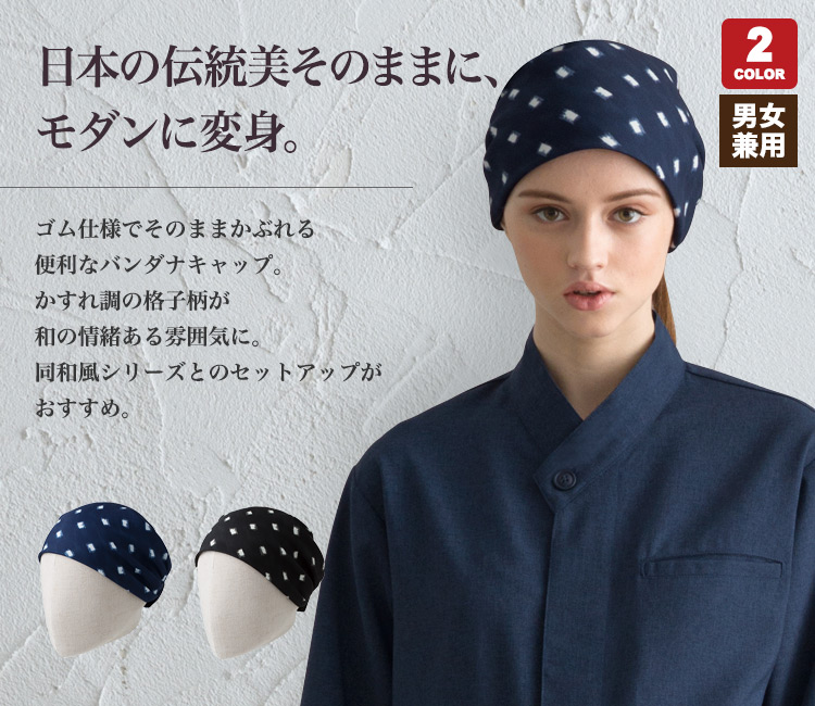 趣のある和柄が雰囲気のあるバンダナキャップ。