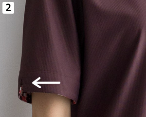半袖の袖口にスリットが入っていることによって、腕の上げ伸ばしがしやすくなります。