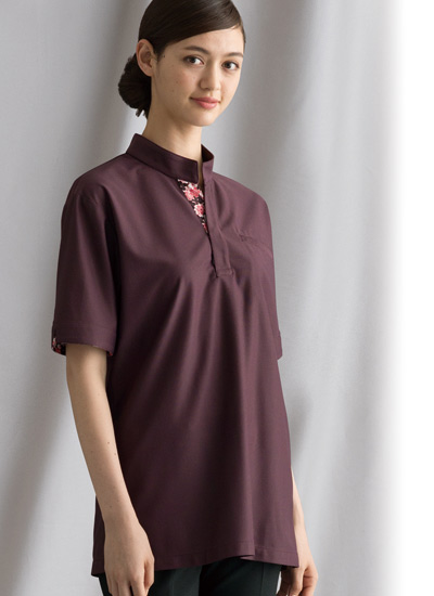 伝統色と和柄の組み合わせが奥ゆかしい半袖の和風カットソー。 忙しく働く方や清潔感に気を配る現場を考慮し、機能面にもこだわりました。 割烹・和食店・お寿司屋・そば屋・うどん屋など和空間をさらに華やかにしてくれる一着です。