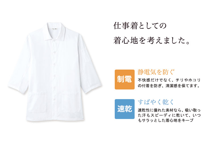 引っ張りや摩擦に強く、非常に肌触りがよい生地を使用した次世代白衣。