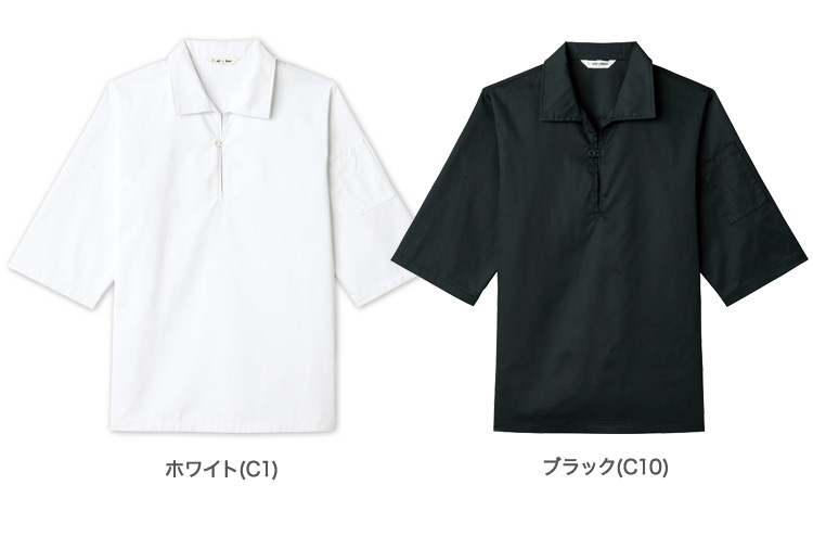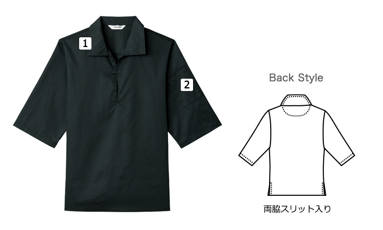 かぶりタイプでカジュアルに着こなせる新感覚のコックシャツ。