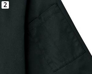 左袖のペン差しポケット付きで、オーダー用のペンを入れておけるので便利。