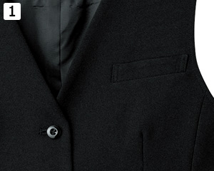 動きやすいストレッチ性のあるノーカラーのベストです。長時間着ていても疲れにくい着心地の良さや、洗濯した際に裏地が出ないよう襟ぐりにおさえステッチを施すなど、毎日着用する方への細かな配慮が行き届いた一枚。