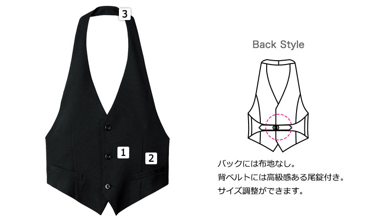 長時間着ていても疲れにくい着心地の良さで 動きやすいストレッチ性のあるフォーマルカマーベストです。 バックの背ベルトには高級感のある尾錠付きで ウエスト周りのサイズ調節ができます。