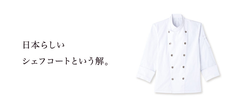 こだわり抜いた洋風のコックコートに和のテイストを取り入れて、日本独自の立ち姿に昇華させます。
