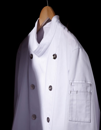 プレミアムなコックコートの汎用タイプで、機能性と美しさを維持しコストを抑えることが実現しました。