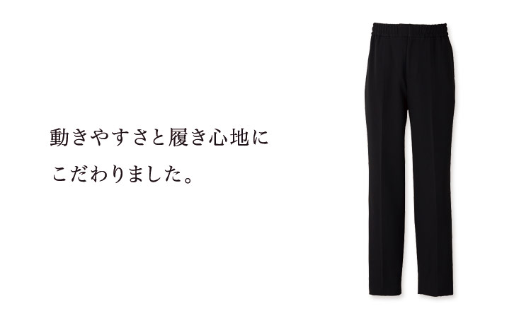 軽快な履き心地、ストレッチ素材なので動きやすく働きやすいパンツです。