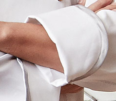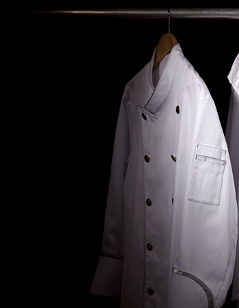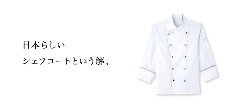 こだわり抜いた洋風のコックコートに和のテイストを取り入れて、日本独自の立ち姿に昇華させます。