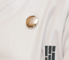 メタルボタンの質感にもこだわり、ハレの場に合うシェフの定番に。