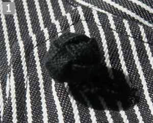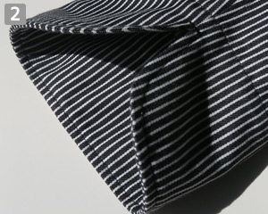 ヒッコリー特有の硬さのない、やわらかく綿のような質感が強いヒッコリー素材。ポリエステル高混率で綿100%よりも洗濯後に早く乾きます。