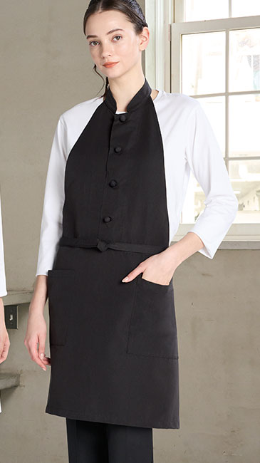 パティスリーなどの洋菓子店に合うモードなデザイン。シンプルなカットソーやシャツとコックエプロンを組み合わせることで、洗練されたモードな着こなしが叶います。