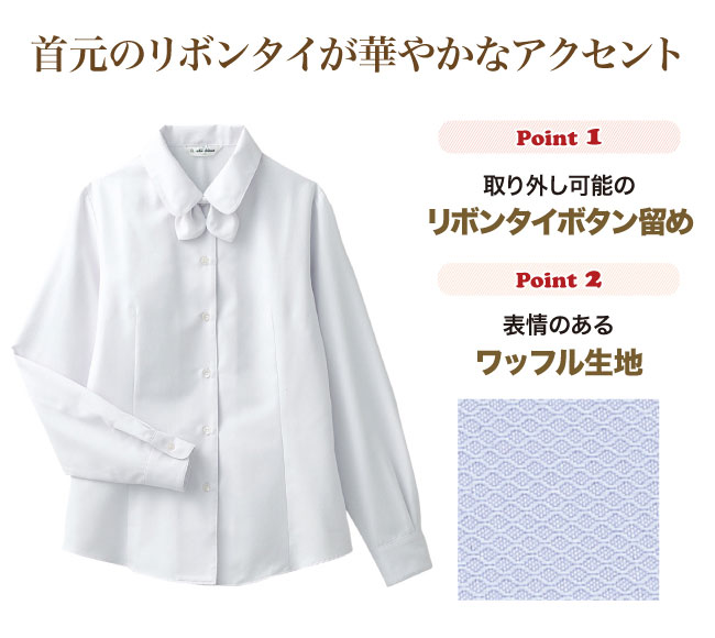 取り外し可能のリボンタイ付きレディースカラーの長袖ブラウス