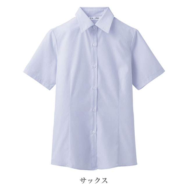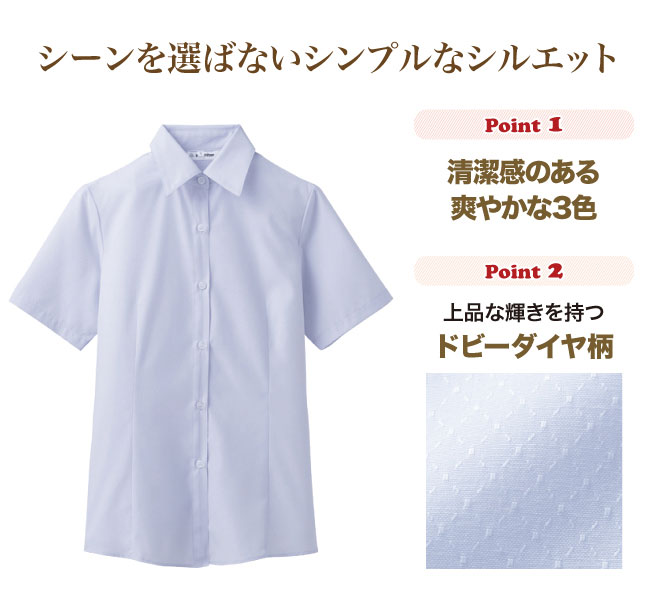 上品な輝きを持つダイヤ柄のレディースカラーブラウス(半袖)