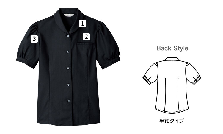 【在庫限り】[通年]高級感のあるカルゼ生地がリッチなショールカラーブラウス[半袖](31-BL8056)