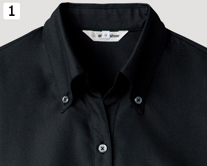 首回りが楽な開襟タイプの襟元。ボタンダウン仕様で信頼感が生まれます。