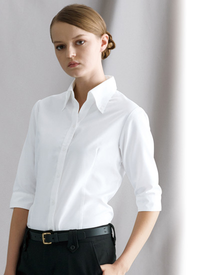 [通年]高級感のあるカルゼ生地がリッチなオープンカラーブラウス[七分袖](31-BL8057)