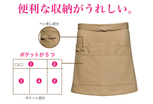 制電、ストレッチ!ポケット5つに、ペン差しポケット付き