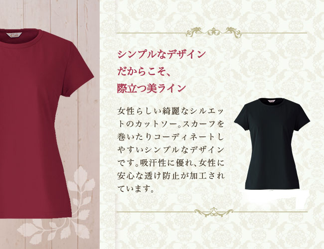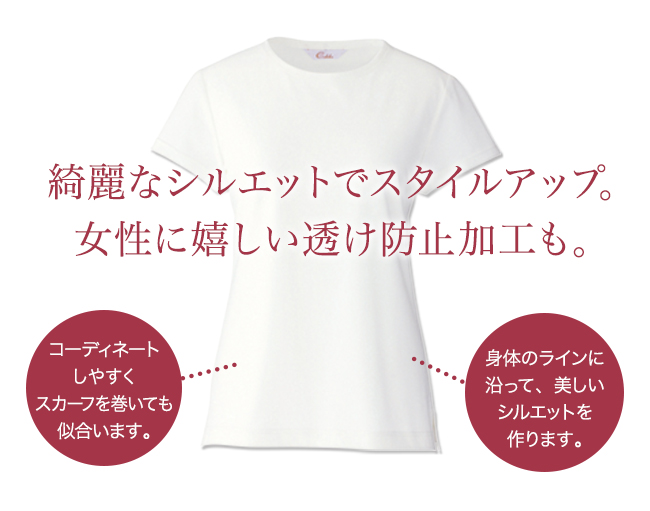 吸汗性に優れ、女性に安心な透け防止が加工されています。