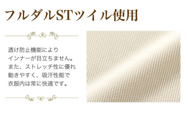 - 透け防止、吸汗、制電、ストレッチ