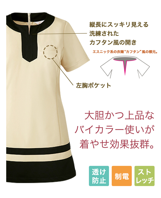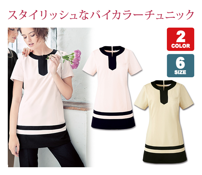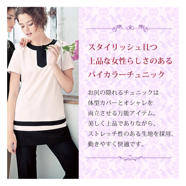 【calalaチュニック】 動きやすく快適なストレッチ素材。 スタイリッシュなバイカラーチュニック。