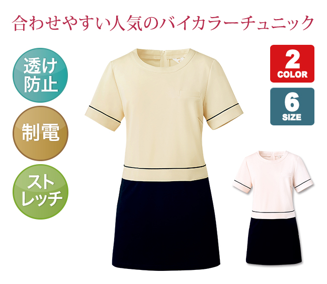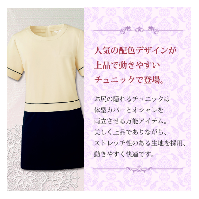 【calalaチュニック】 動きやすく快適なストレッチ素材。 人気の配色デザインが上品なチュニック。