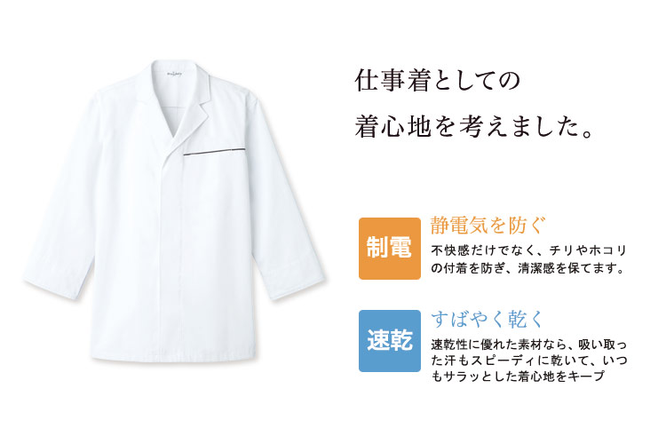 引っ張りや摩擦に強く、非常に肌触りがよい生地を使用した次世代白衣。