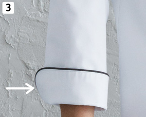 袖口にはそのままでも、袖を折り返しても着れる便利なスリット入りです。