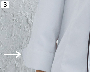 袖口にはそのままでも、袖を折り返しても着れる便利なスリット入りです。