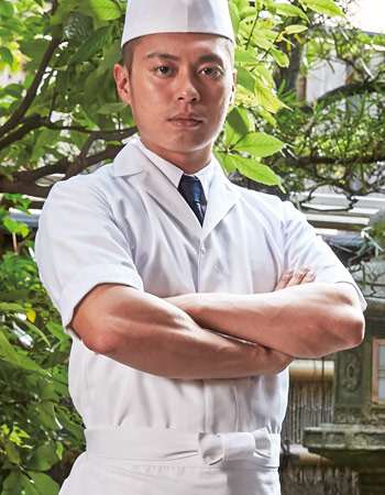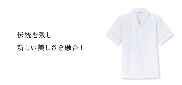 老舗割烹旅館“近又”との共同開発で職人の理想の白衣を実現。さらにヘリンボーン生地で質感豊かな素材を使用し、新しく生まれ変わらせました。