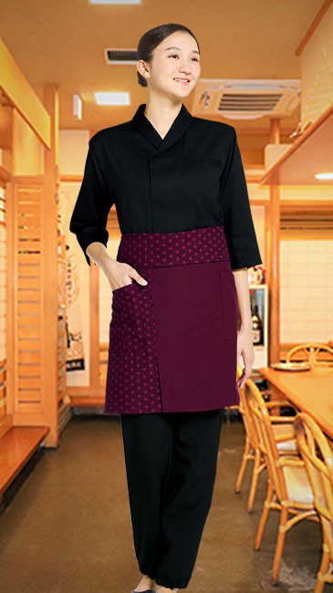 東京の名店「すし 久遠」とチトセのブランド「dradnats」の共同開発。動きやすさと上品な美しさを兼ね備えた腰下エプロン。切子柄と無地の切り替えがポイントの、右前のスリットで足さばきが楽なイージーケアのショート丈エプロンです。