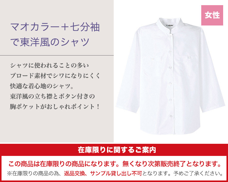 【在庫限り】マオカラーシャツ[女性用](31-EP5163)