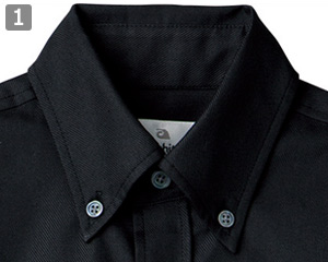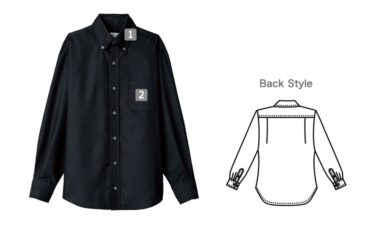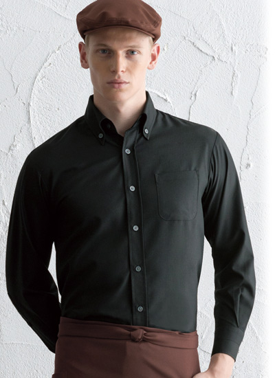 スタンダードなボタンダウンタイプの長袖シャツ。 シワになりにくく、毎日のお手入れが簡単なイージーケア素材を使用。 1枚で着ても、帽子やタイ、エプロンなどとコーディネートしても様になります。